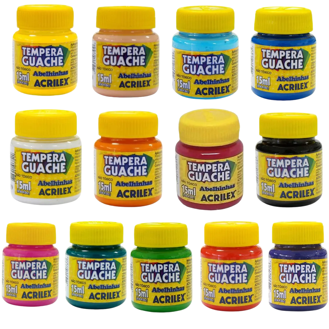 Características do Produto: Ideal para pinturas em papel, papel cartão, cartolina e até mesmo no E.V.A., a Tinta Tempera Guache Acrilex possui cores vibrantes incríveis e é perfeita para trabalhos artesanais e escolares ou para quem ama a pintura! É armazenada em frasco de plástico com capacidade de 15ml, podendo misturá-las entre si para criar novas cores! Sua tinta é solúvel em água e atóxica, proporcionando mais rendimento e facilitando na limpeza, além de apresentar embalagem com tampa protetora rosqueável, garantindo segurança e evitando vazamentos! Com ela é possível desenvolver a criatividade, a coordenação motora e a percepção visual das cores, sendo incrível para os mais diversos tipos de trabalhos manuais. Com a Tinta Tempera Guache Acrilex, deixe seu mundo mais colorido! <3